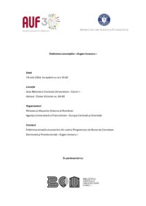 Vineri, 19 iulie 2024, Biblioteca Centrală Universitară a organizat, alături de Agenția Universitară a Francofoniei (AUF) și Ministerul Afacerilor Externe (MAE), Reuniunea Anuală a Laureaților Bursei „Eugen Ionescu”, în Aula BCU.